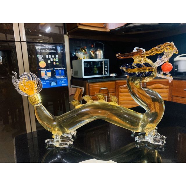 Vỏ chai rượu thủy tinh hình con rồng với chất liệu thủy tinh trong suốt, thiết kế kĩ thuật tỉ mỉ, sắc nét từng chi tiết mang lại vẻ đẹp sang trọng cho phòng khách của bạn.Kích thước: 42cm x 38cm