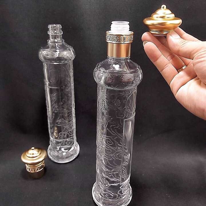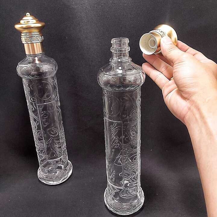 Giới thiệu Vỏ Chai Thủy Tinh Đựng Rượu họa tiết Rồng - nắp nhựa kiểu Tháp màu Đồng dung tích 500ml