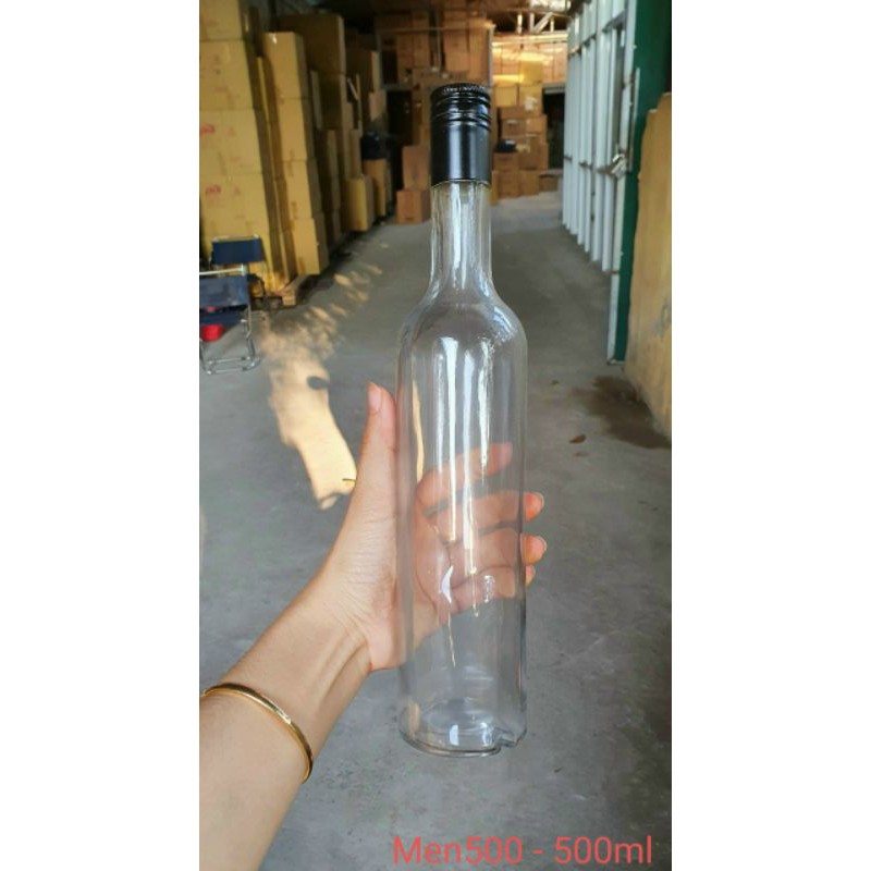 Vỏ chai thủy tinh Men500 tròn nắp nhôm
