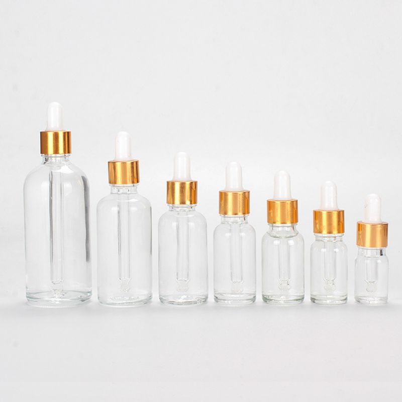 Giới thiệu Vỏ chai thủy tinh, tinh dầu , chai serum trắng trong khoen vàng ống thủy tinh : 5ml, 10ml, 15ml, 20ml, 30ml, 50ml, 100ml
