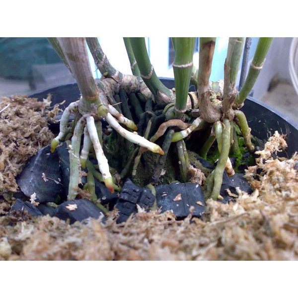 Ưu điểm của vỏ đậu là có hàm lượng đạm cao, thời gian phân huỷ lâu, đặc biệt giữ ẩm rất tốtTrong trồng lan trộn chung vỏ đậu với than, xơ dừa xé tơi tạo hỗn hợp giá thể rất tốt, giá thành rẻ