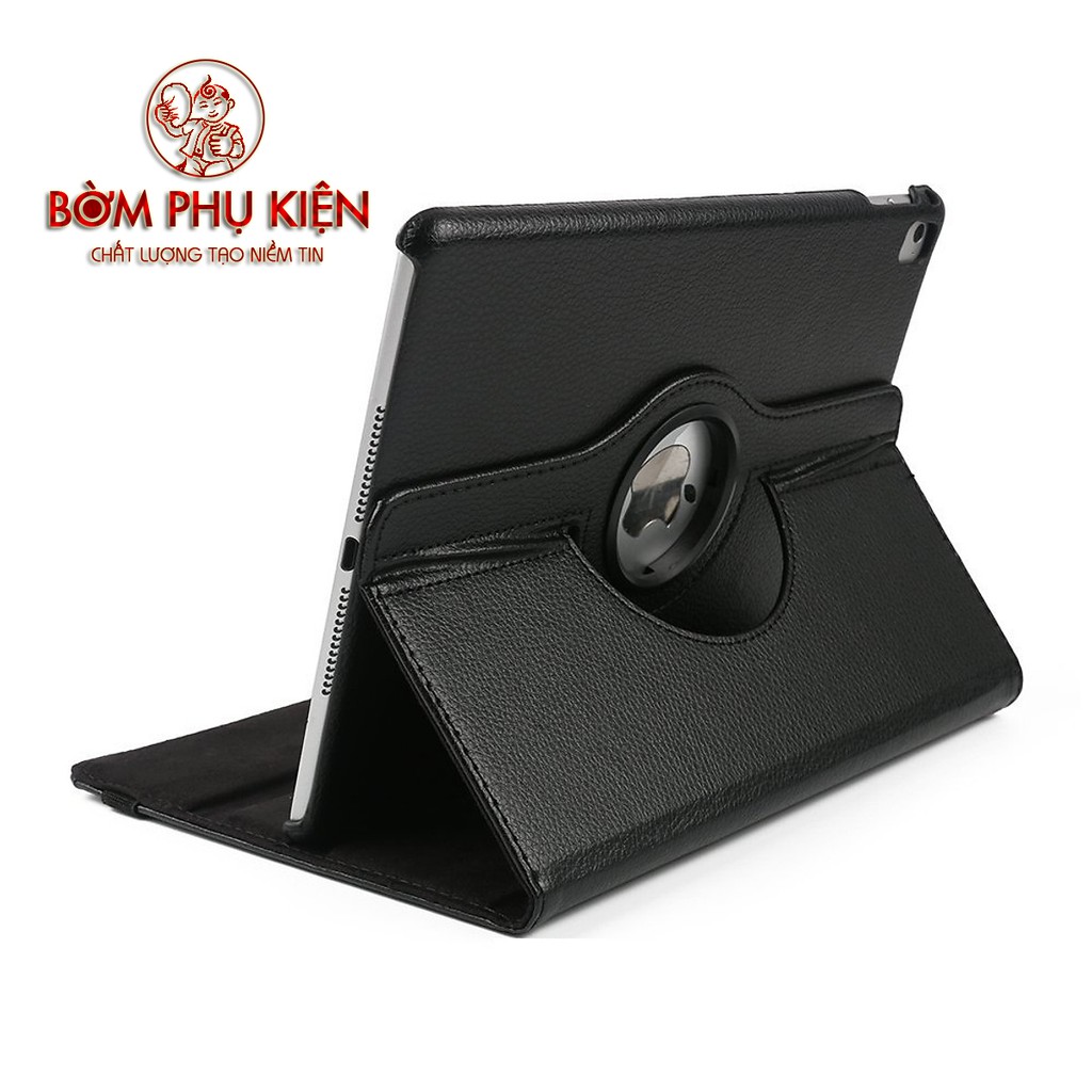 Bao da xoay 360 bao gồm một ốp lưng dạng hở táo gắn với một đế xoay ở phần nối với tấm đậyChất liệu da tổng hợp có những đường vân sần phủ bên ngoài bao da có tác dụng chống thấm, chống trơn trượt, bên trong lõi tấm đậy có lót một lớp đệm mút dày chống sock, chịu lực cực tốt bảo vệ mạnh mẽ cho màn hình chiếc ipad
