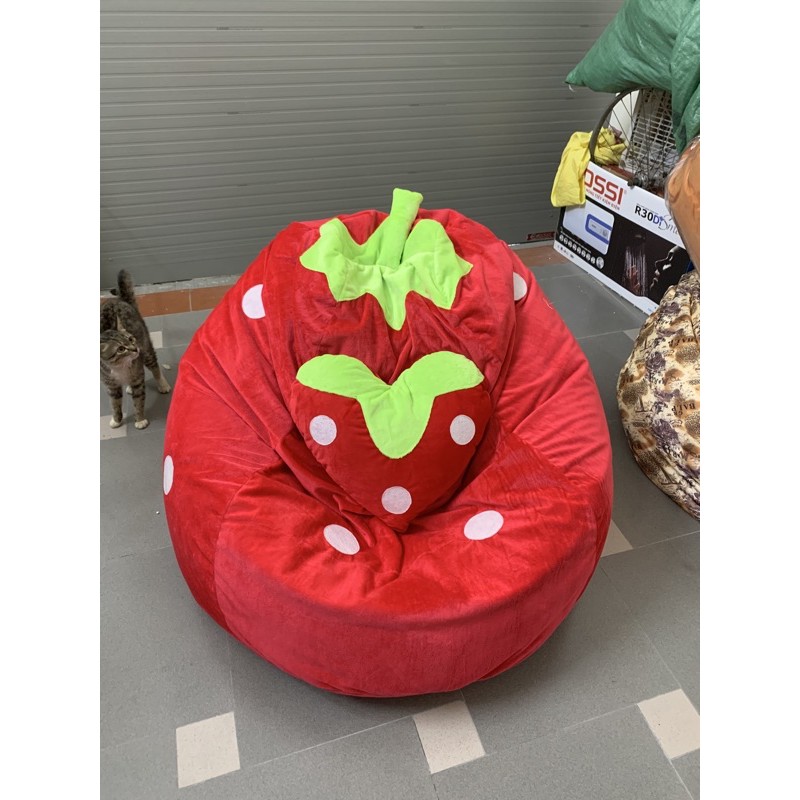 Vỏ Ghế lười hạt xốp dâu tây kèm gối sz xL