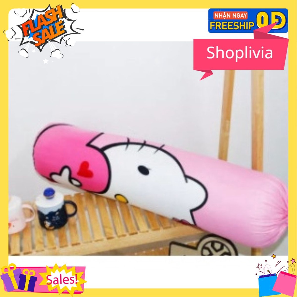 Vỏ Gối Ôm Cotton poly siêu kute 35x100cm-mẫu kitty hồng#vogoiomkitty
