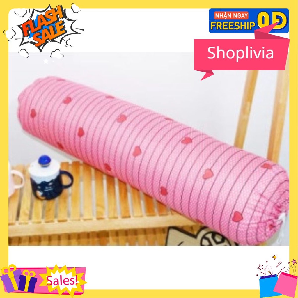 Vỏ Gối Ôm Cotton poly siêu kute 35x100cm-mẫu tim kẻ hồng#vogoiomtimkehong