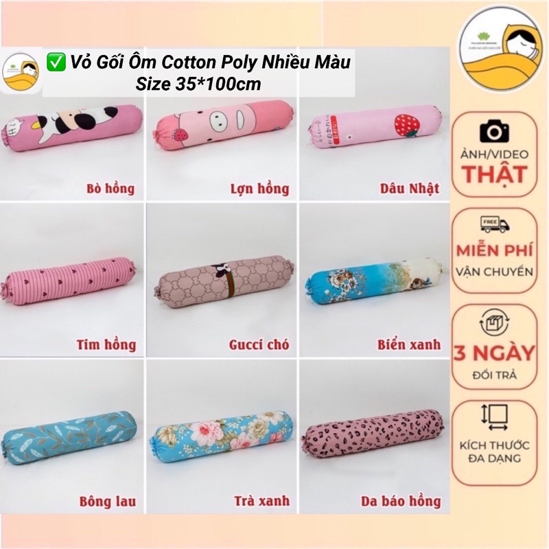 Vỏ Gối Ôm Cotton Poly ,Vỏ Gối 35*100cm Nhiều Mẫu ( Được Chọn Màu )