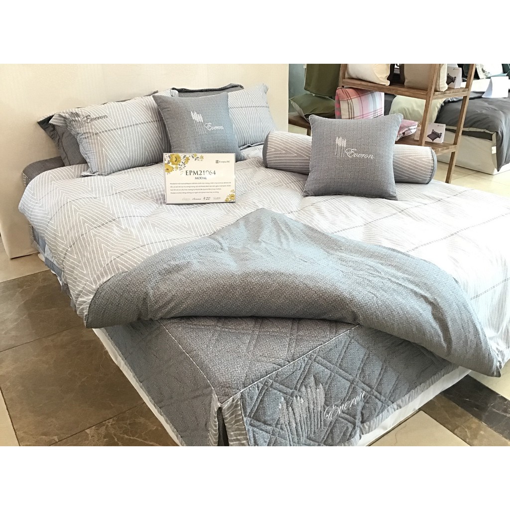 Đơn giản nhưng không hề nhạt nhòa – đó chính là thiết kế của bộ chăn ga EPM21064. Những đường kẻ được in cách điệu, chéo nhau tạo nên những đường ziczac mới lạ. Trên gam màu vải trắng, các đường kẻ ấy nổi bật, mang đến vẻ đẹp tối giản – xu hướng thiết kế hiện nay.
