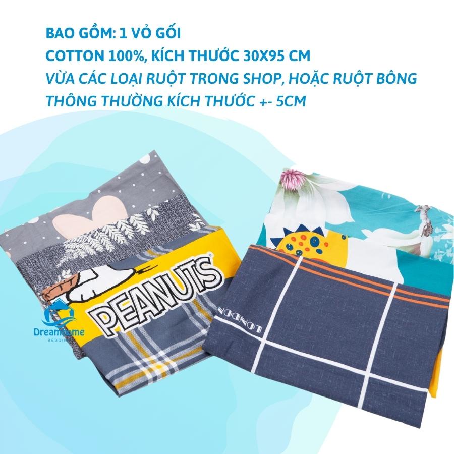 Vỏ gối ôm kéo khóa cotton 100% kích thước 30x95 cm, áo gối ôm nhiều màu cho bé và người lớn Dreamhomebedding