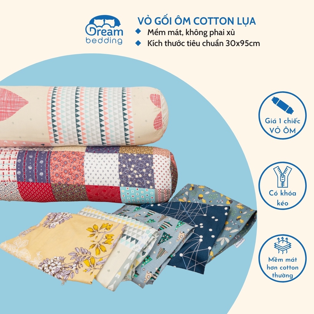 - Vỏ gối ôm dây khóa kéo dọc vỏ, kích thước 30x100 cm vừa tất cả các loại ruột gối ôm thông dụng.