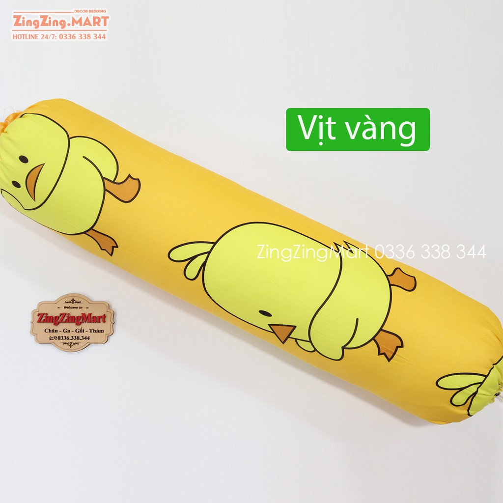Vỏ gối ôm mẫu Vịt Vàng đẹp xuất sắc, Gối ôm có dây rút 2 đầu (Được lựa thêm mẫu)