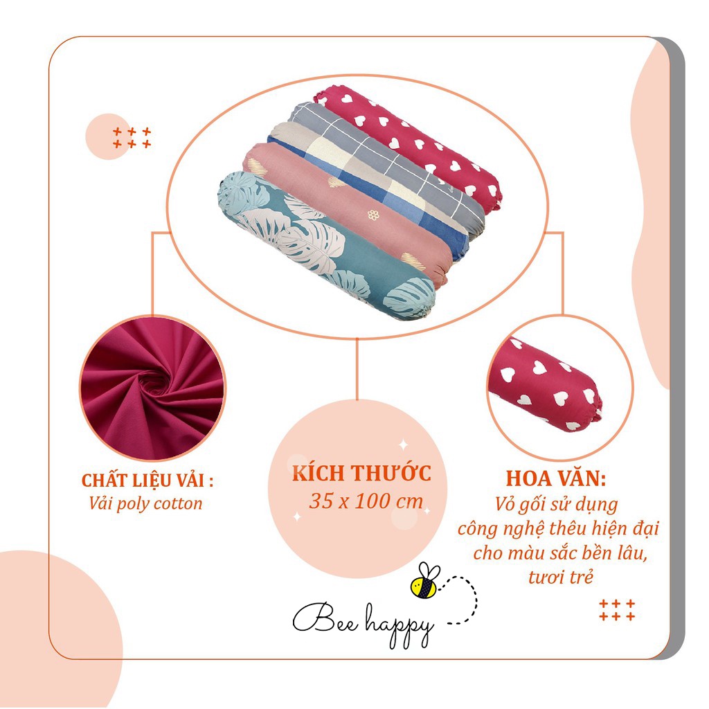 Vỏ gối ôm35x100 vỏ gối, bao gối ôm cotton poly đơn giản BEE HAPPY BEDDING
