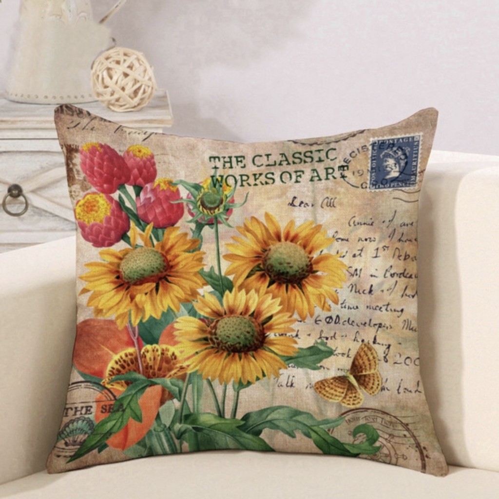 Giới thiệu Vỏ Gối tựa lưng, gối sofa, gối trang trí Hoa Hướng Dương vải bố dày dặn