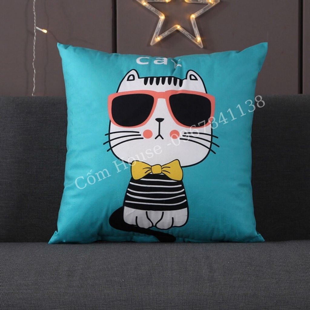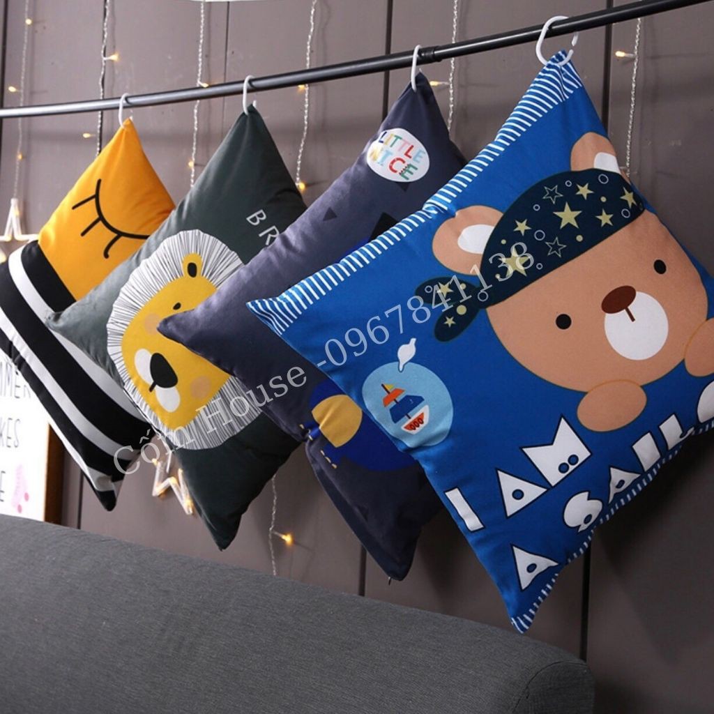 Vỏ Gối Tựa Lưng, Gối Tựa Sofa, Gối Tựa Vuông Nhung 2 Mặt Hoạt Hình Bắc Âu Siêu Bền 45x45