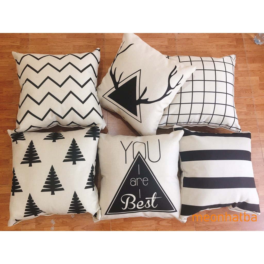 Vỏ gối tựa lưng sofa set ĐEN TRẮNG