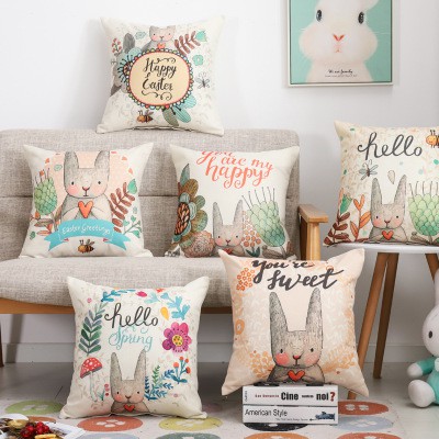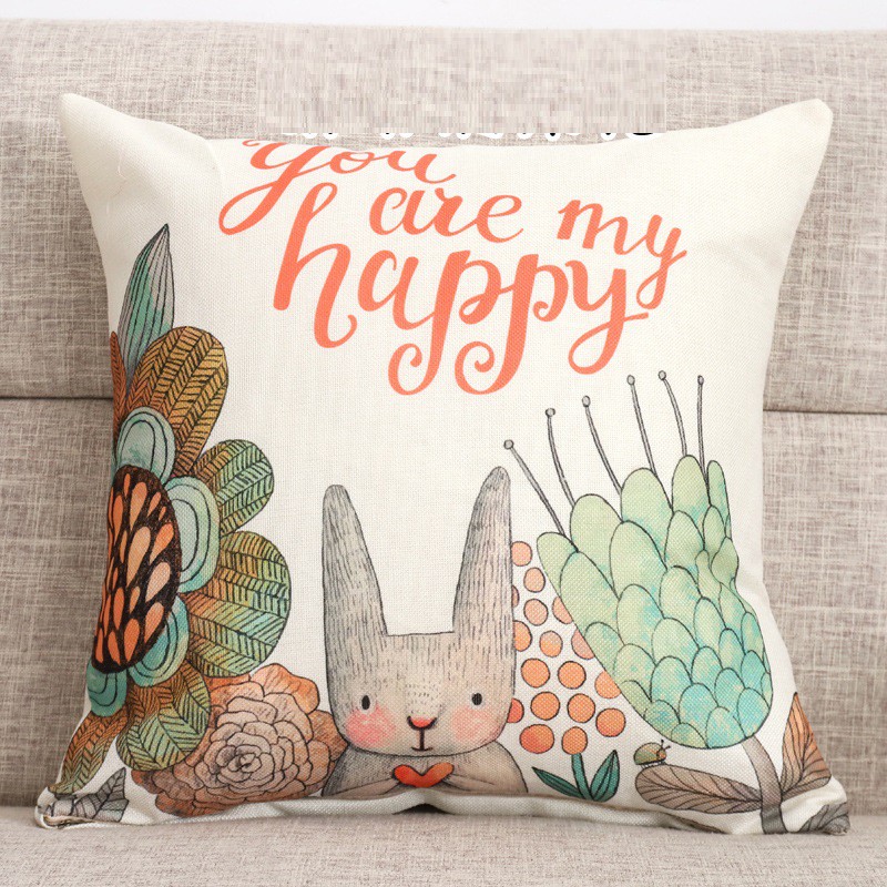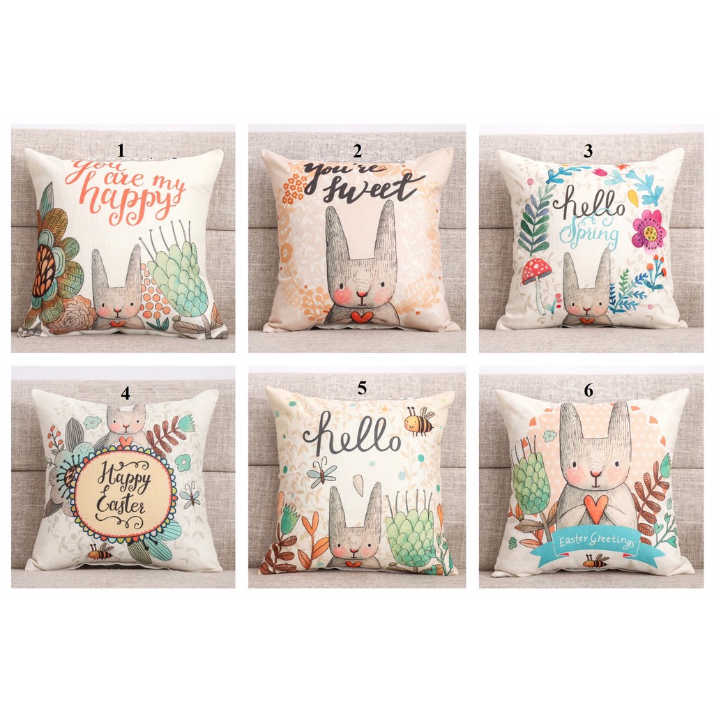 Vỏ gối tựa lưng sofa set Thỏ trang trí phòng khách size 45 x 45cm
