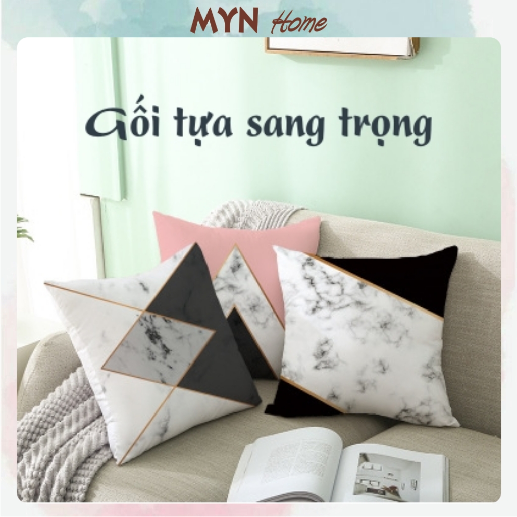 Vỏ gối tựa lưng sofa vân đá sang trọng, vỏ gối tựa vuông 45x45cm MYN Home Decor