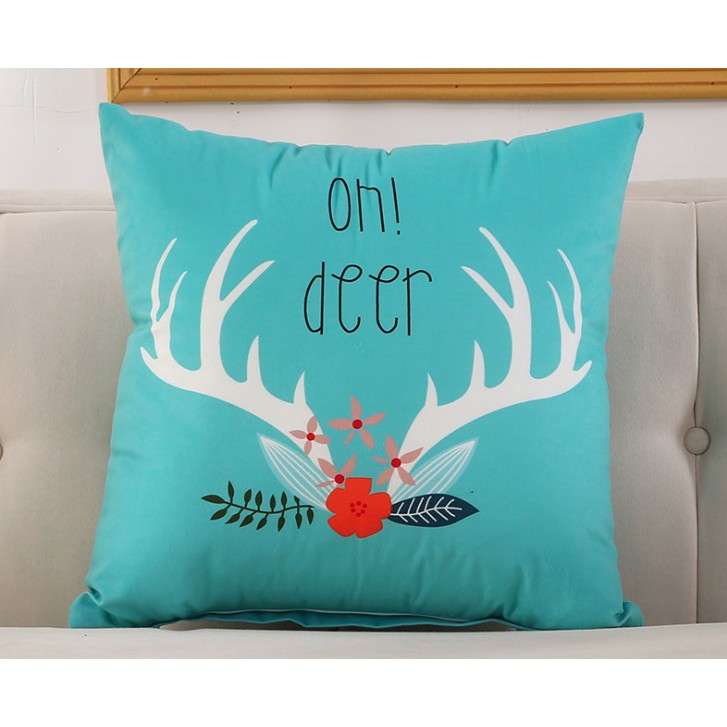 Vỏ gối tựa lưng vải Nhung in 2 mặt Hình Nai Hươu Cao Cấp , Sang trọng ĐX021