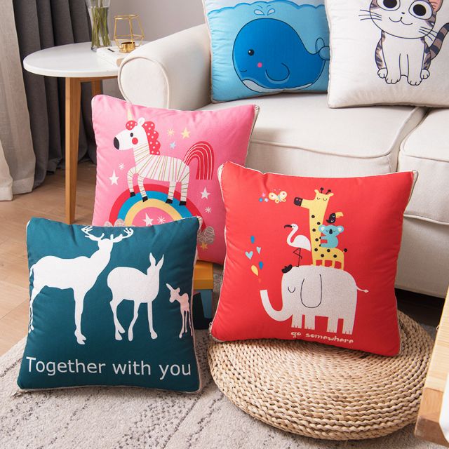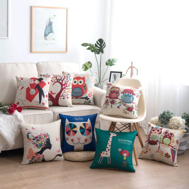 Gối tựa sofa trẻ trung kt 45*45cm , chất liệu vải sợi , với hình ngộ nghĩng, đáng yêuPhù hợp để sofa, để phòng khách, quán cafe