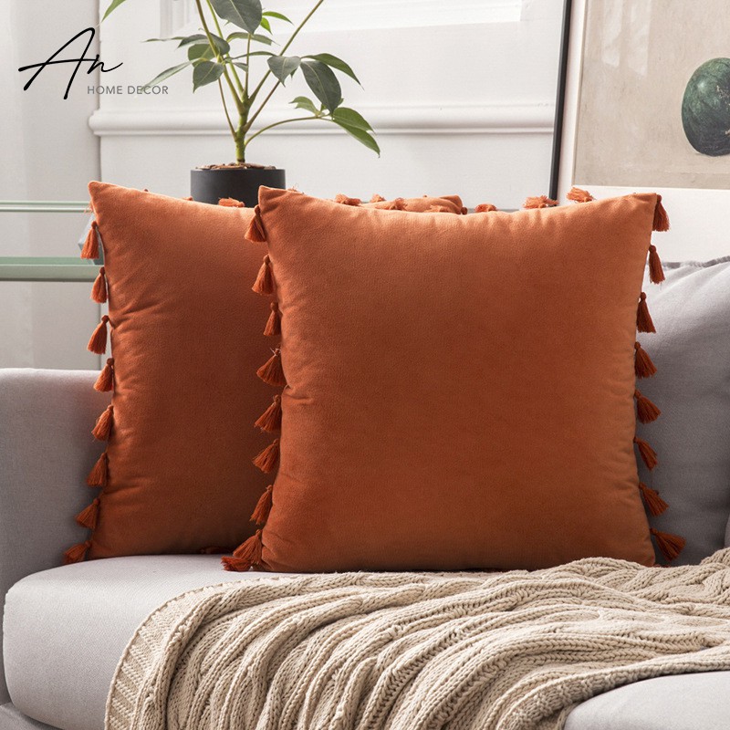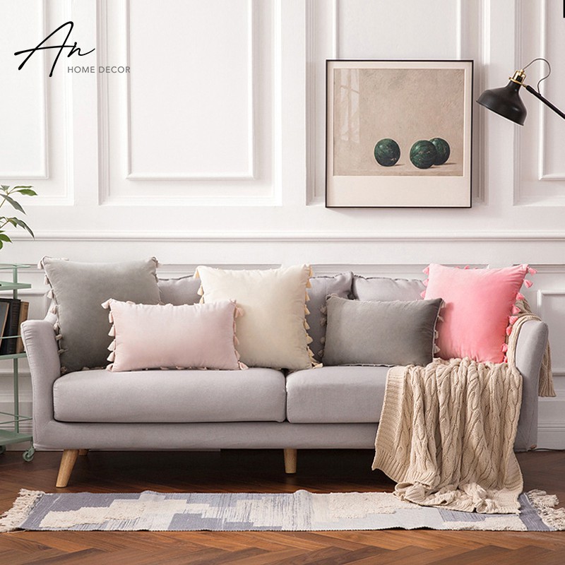 An Home Decor l Vỏ gối tựa văn phòng sofa vuông chữ nhật đơn sắc tua rua (Không kèm ruột)🍀 THÔNG SỐ KỸ THUẬT: