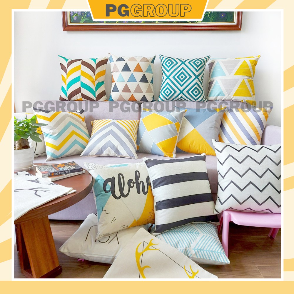 Nhà cửa & Đời sống > Chăn ga gối nệm > Gối ôm || Vỏ gối vuông tựa lưng trang trí sofa 45x45cm HÌNH HỌC ALOHACòn hàng