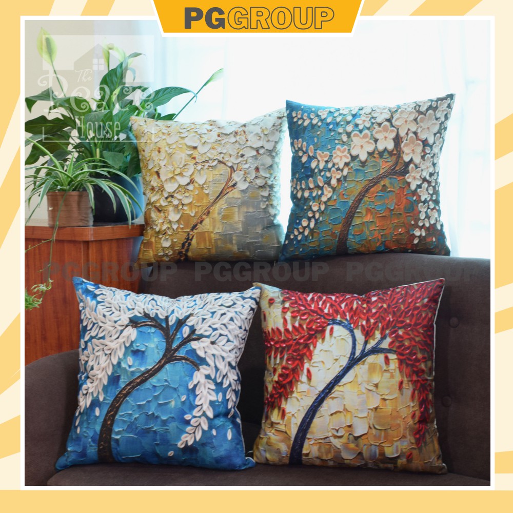 Vỏ gối vuông tựa lưng trang trí sofa 45x45cm hoạ tiết CÂY HOA 3D