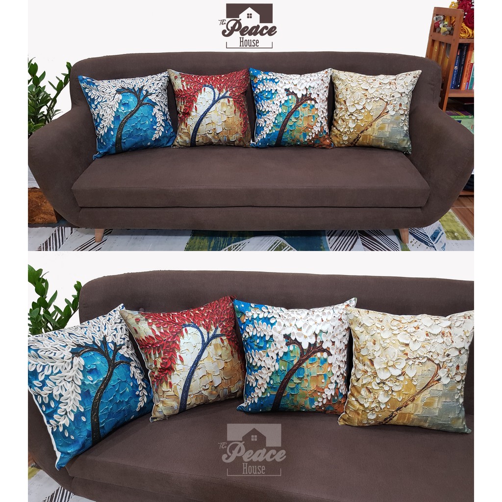 Giới thiệu Vỏ gối vuông tựa lưng trang trí sofa 45x45cm hoạ tiết CÂY HOA 3D