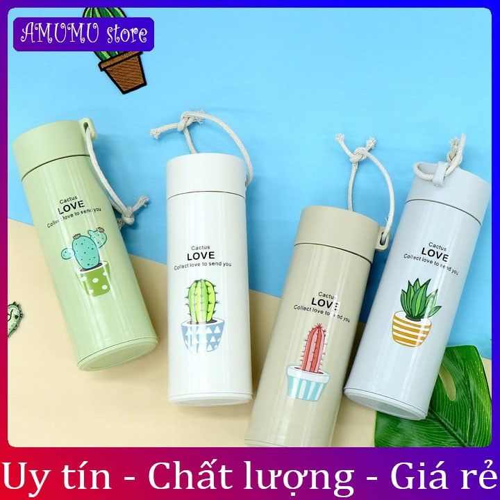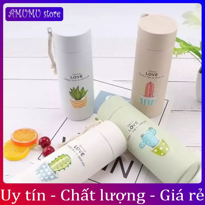 Giới thiệu [Vỡ hoàn tiền]Bình nước in hình xương rồng 450ml lõi thủy tinh bọc vỏ nhựa lúa mạch có dây sách (GIAO MẪU NGẪU NHIÊN)