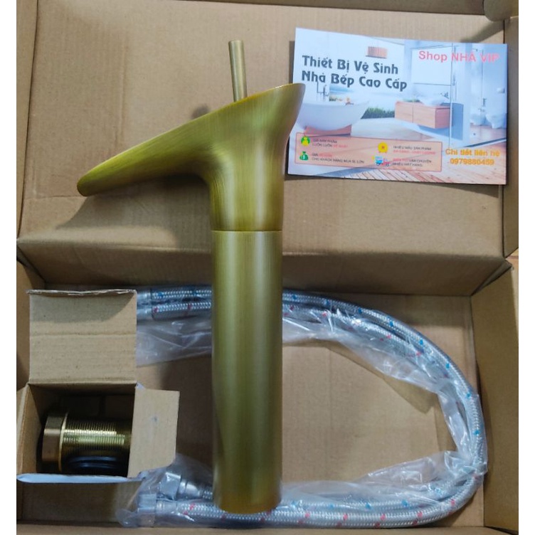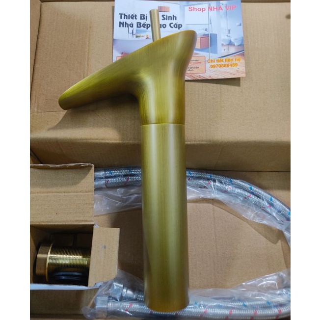 Vòi lavabo nóng lạnh cổ đồng cao cấp, điếu vàng đồng, giả cổ
