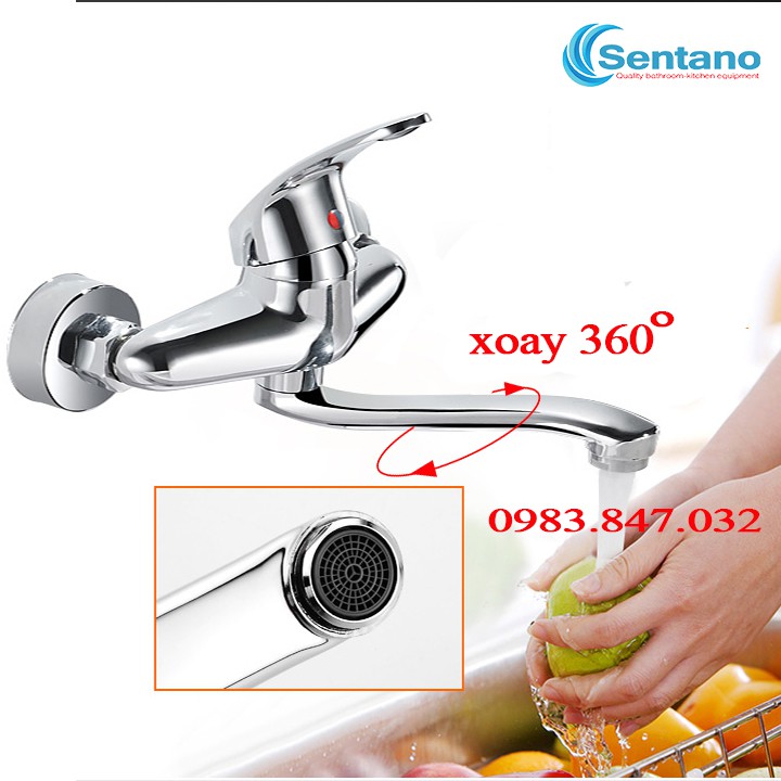 VÒI RỬA CHÉN NÓNG LẠNH GẮN TƯỜNG SENTANO STN-418 XOAY 360- Chất liệu : Đồng thau phủ lớp nikien-crom chống gỉ