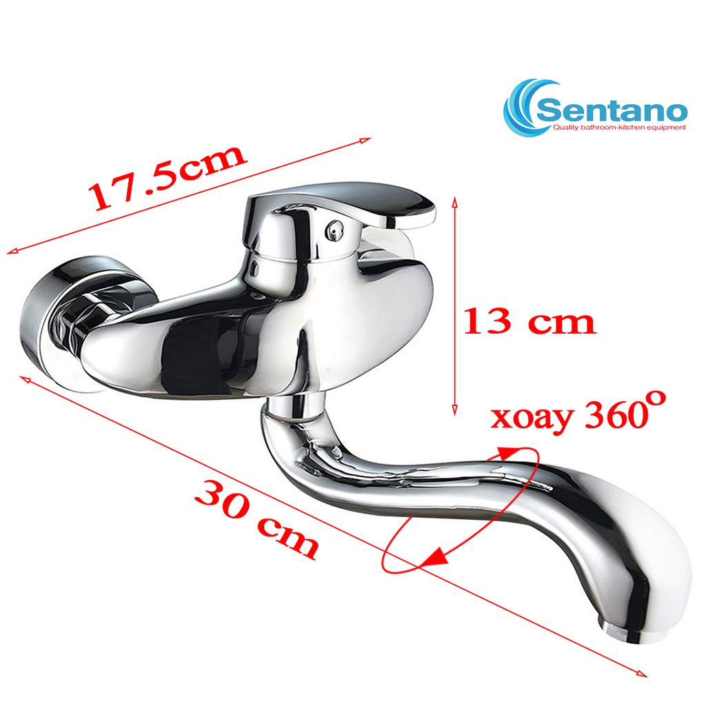 Vòi rửa chén bát nóng lạnh âm tường SENTANO STN-418 xoay 360 bằng đồng thau mạ crom bóng không gỉ