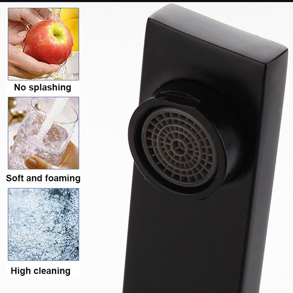 - Đầu vòi được thiết kế với công nghệ xoáy nước chống bắn nước, giúp tiết kiệm nước.