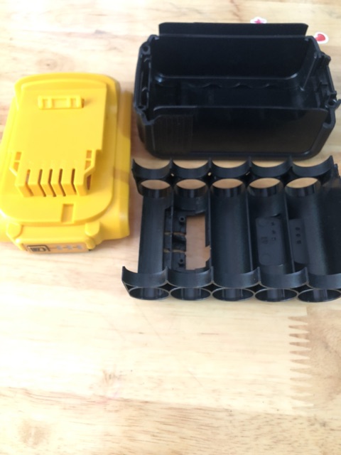 - Vỏ, mạch pin Dewalt DEW183 18V - 5Ah mạch có led báo pin và nhận sạc zin, loại để được 10 cell Li-ion 18650.- Mới 100%