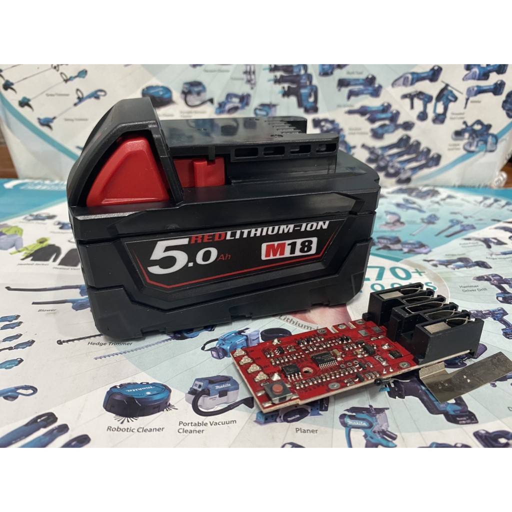 Giới thiệu Vỏ mạch Milwaukee M18 5S 18V cân bằng, Led báo pin và nhận sạc zin.