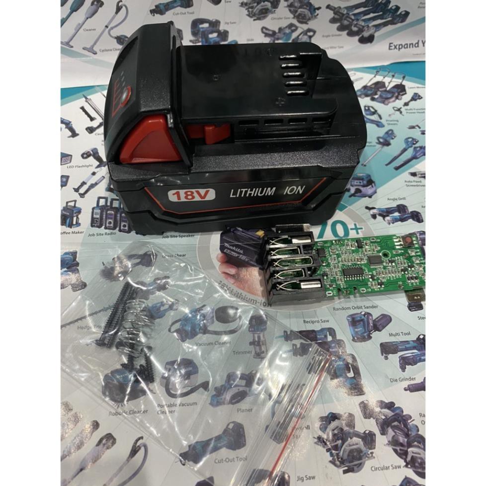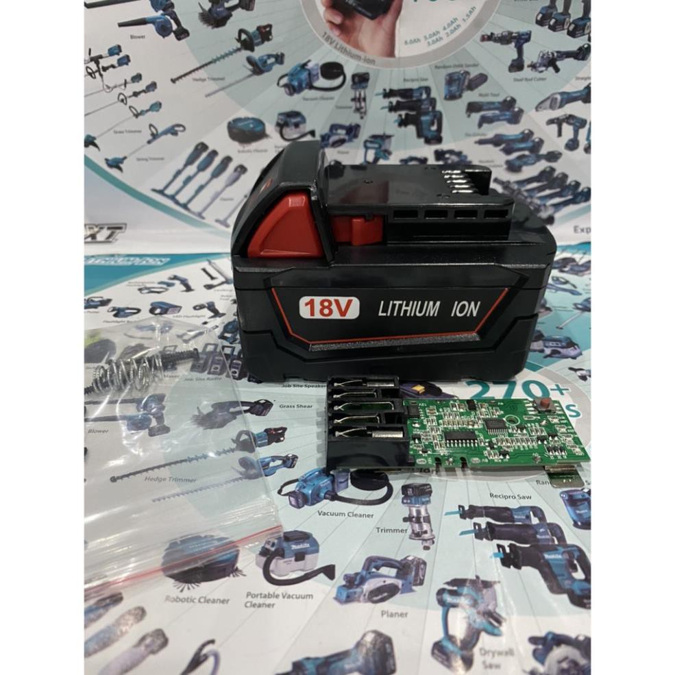 Vỏ mạch Milwaukee M18 5S 18V cân bằng, Led báo pin và nhận sạc zin.