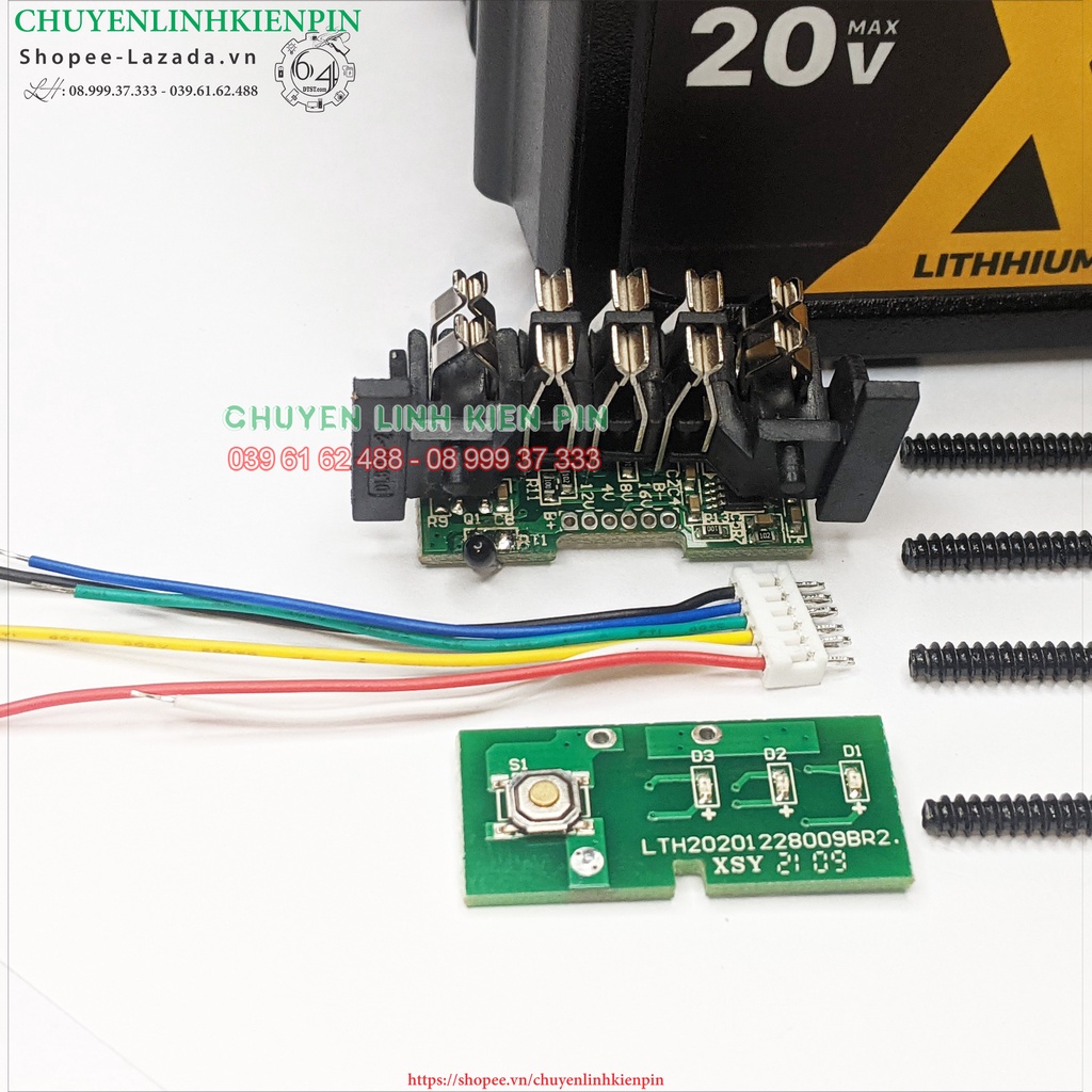 Giới thiệu Vỏ, mạch pin Dewalt 18V - 9Ah có led báo pin và nhận sạc zin , loại để được 15 cell Li-ion 18650 ( Bl64_223 )