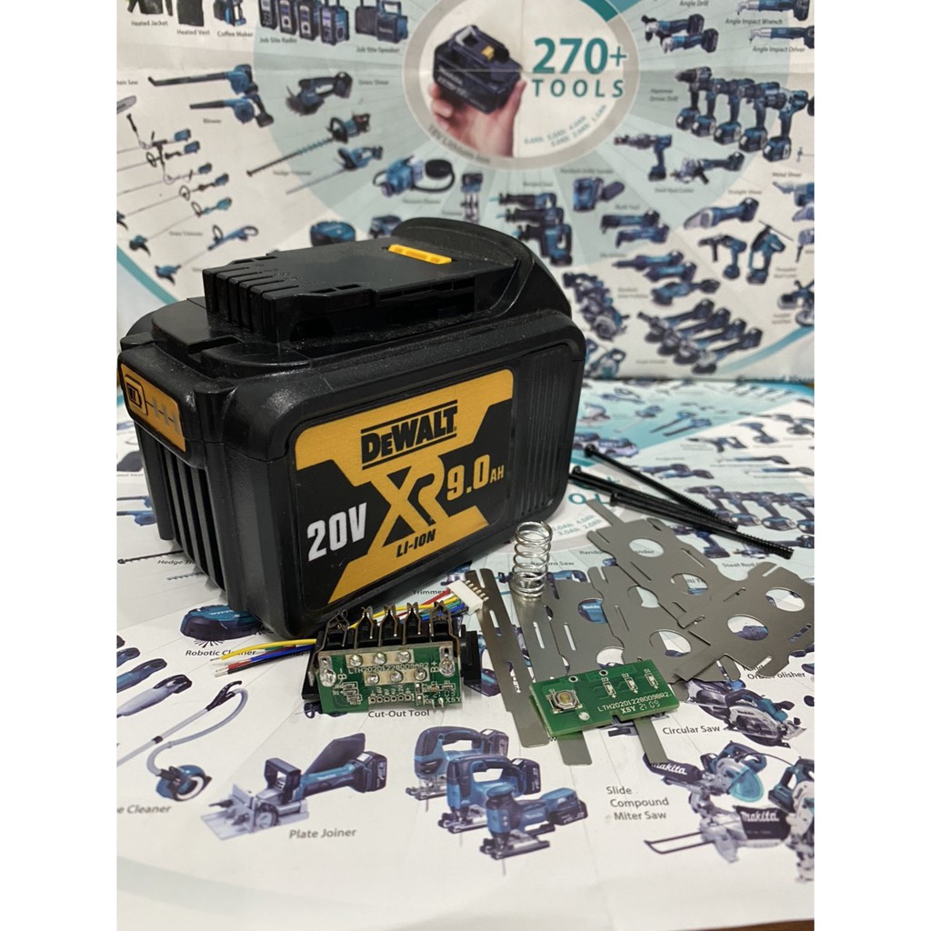 Thông tin sản phẩm:- Vỏ, mạch pin Dewalt 18V - 9Ah mạch có led báo pin và nhận sạc zin , loại để được 15 cell Li-ion 18650.