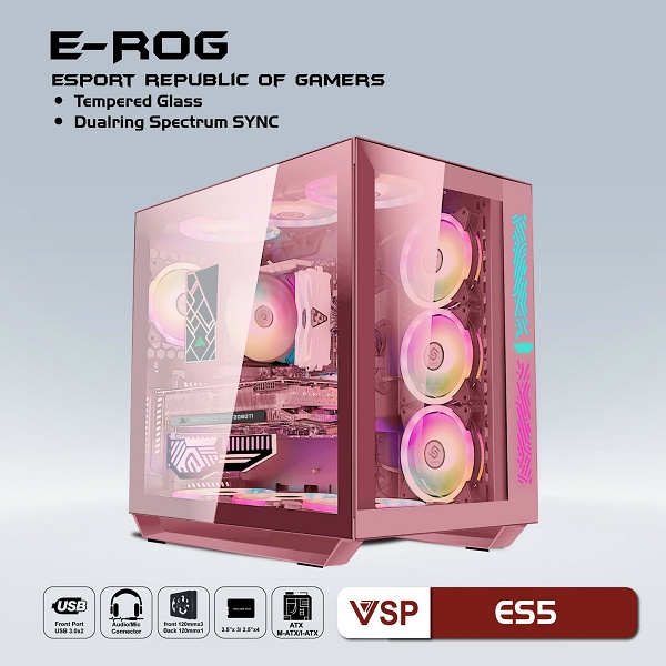 Máy tính & Laptop > Linh Kiện Máy Tính > Case Máy Tính || [Mã 273ELHA100K0 hoàn 7% đơn 500K] Vỏ máy tính Case VSP ES5 (ATX/MICRO-ATX/MINI-ATX)(HỒNG)(KHÔNG FAN) Chính hãngCòn hàng