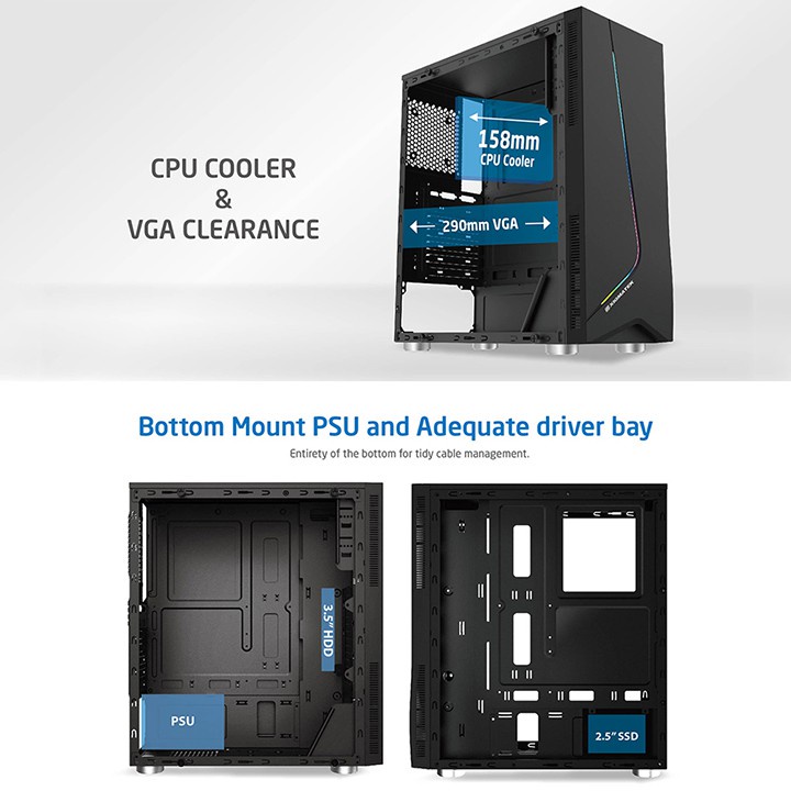 - Hỗ trợ tản nhiệt CPU 158mm