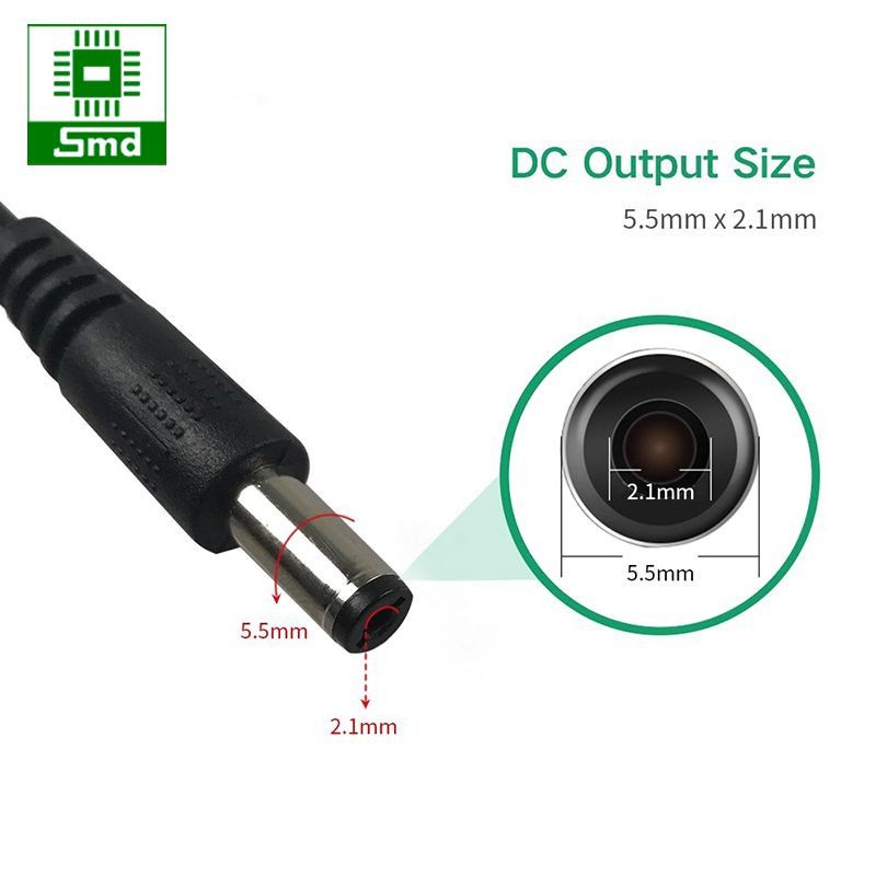 4. Đầu dây cắm: DC5.5mm / 2.1-2.5mm.