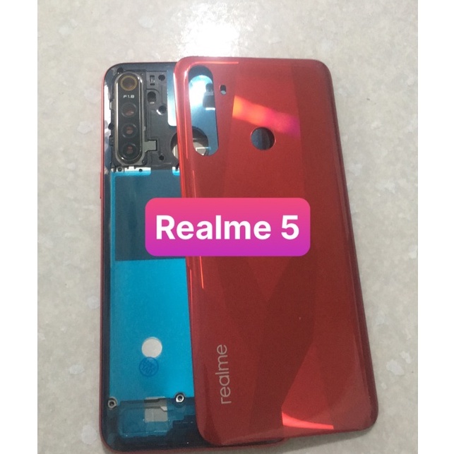 bộ vỏ realme 5 (gồn sươn,lưng,kính cam.phím)