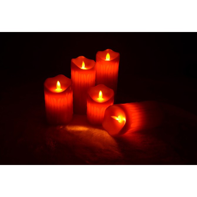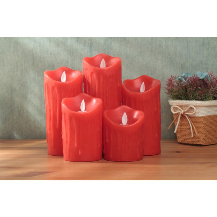 [VỎ SÁP, TIM LẮC LƯ] Nến điện tử vỏ sáp đỏ tim lắc, kiểu sáp chảy, đường kính 7.5cm
