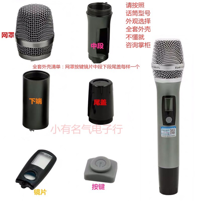 Bao gồm các phụ kiện; lưới, thân, công tắc, kính và đuôi mic