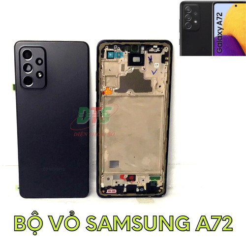Bộ vỏ Samsung A72*Sản phẩm bao gồm xương ôm màn ,sườn giữa giữ main và nắp lưng đậy pin có sẵn kính camera