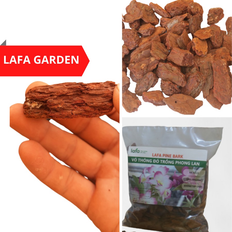 Giới thiệu Vỏ thông đỏ trồng hoa lan LAFA PINE BARK túi 1kg giá thể trồng hoa lan đã qua xử lý