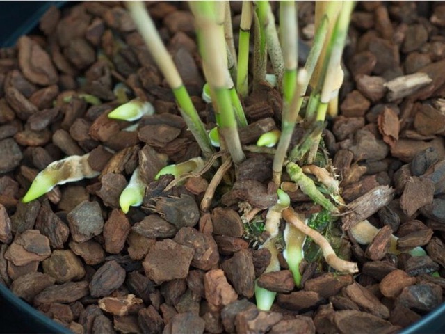 Rất phù hợp cho lan dòng hoàng thảo.Vỏ thông kết hợp trồng trong chậu giả gỗ thông thoáng rất thích hợp cho việc trồng lan.