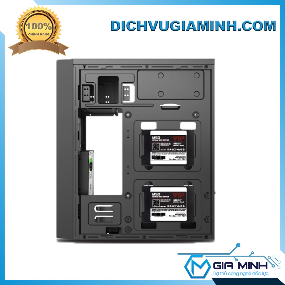Thùng máy tính văn phòng VSP mang thiết kế lịch sự, trang nhã. Kích thước thùng máy thiết kế nhỏ gọn nhưng mang thiết kế thông minh. Hỗ trợ nhiều vị trí lắp đặt ổ cứng SSD và HDD. Ngoài ra thùng máy còn hỗ trợ lắp đặt quạt làm mát nắp hông, giúp không khí mát được thổi trực tiếp vào Bo Mạch Chủ và CPU.