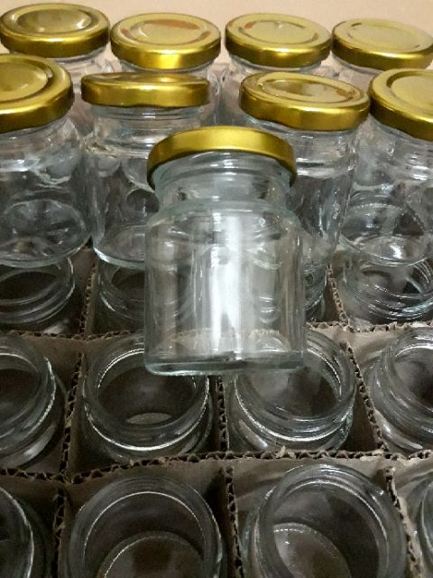 Vỏ thủy tinh nắp thiếc đựng dầu dừa, mật ong, dầu gấc...