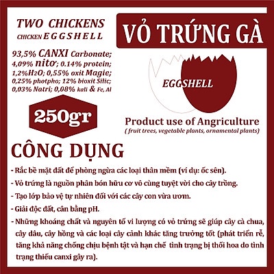 Nhà cửa & Đời sống > Làm vườn > Phân bón || Vỏ Trứng Gà Đã Qua Xử Lý Bổ Sung Canxi Cho Cây, Phòng Ngừa Ốc Sên- Túi 250gr (WCK-001-250G).Còn hàng