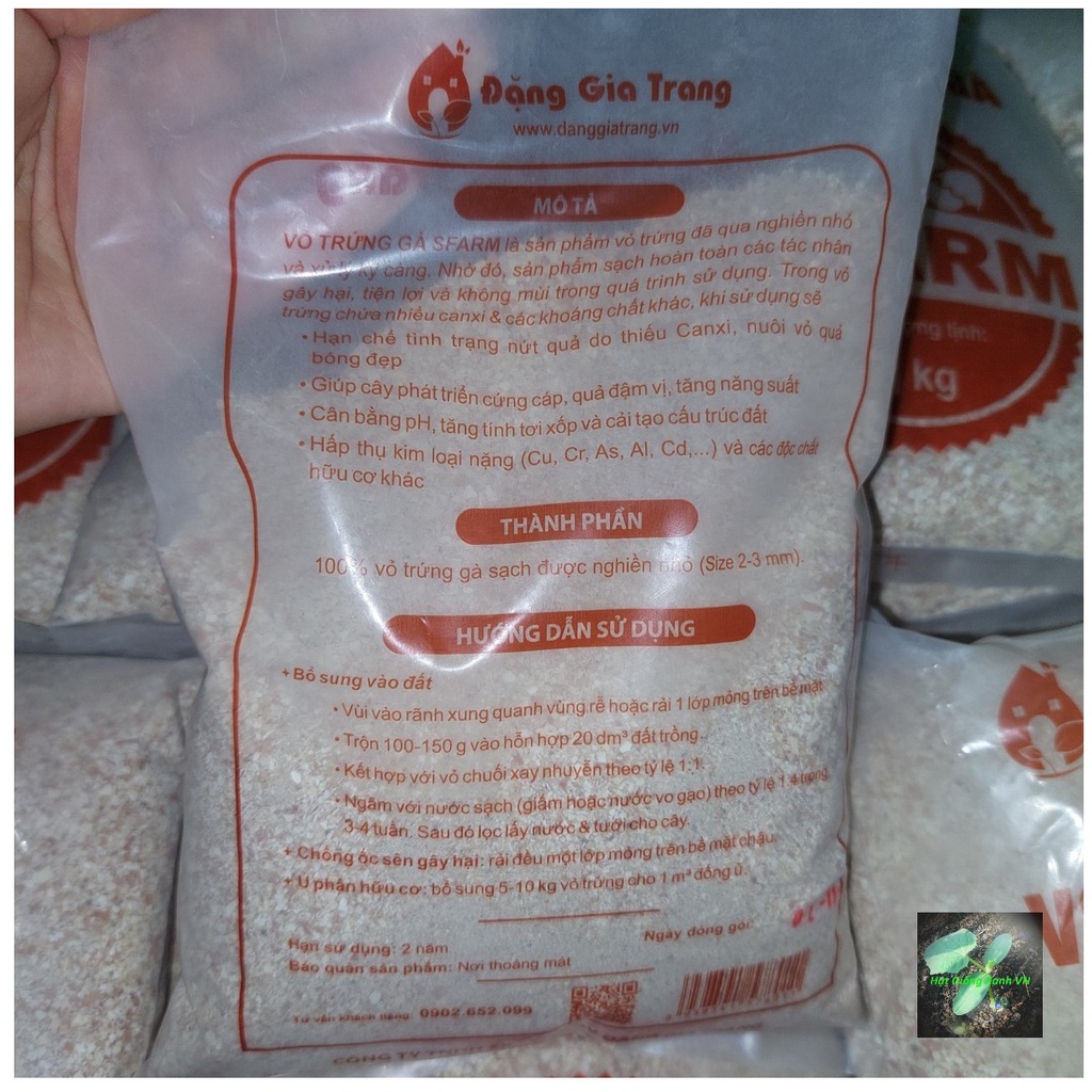 Giới thiệu Vỏ trứng xay nhỏ đã qua xử lý SFARM, đóng túi 1 kg, bổ sung canxi cho cây trồng