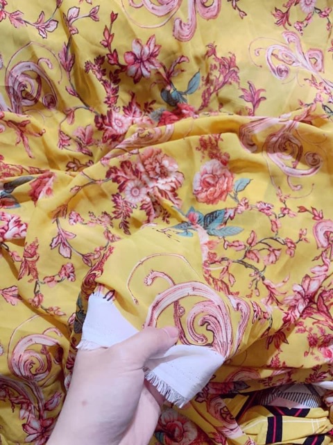 Giới thiệu Voan hoa nền cam mềm rủ may maxi váy vóc siêu xinh khổ 1.5m